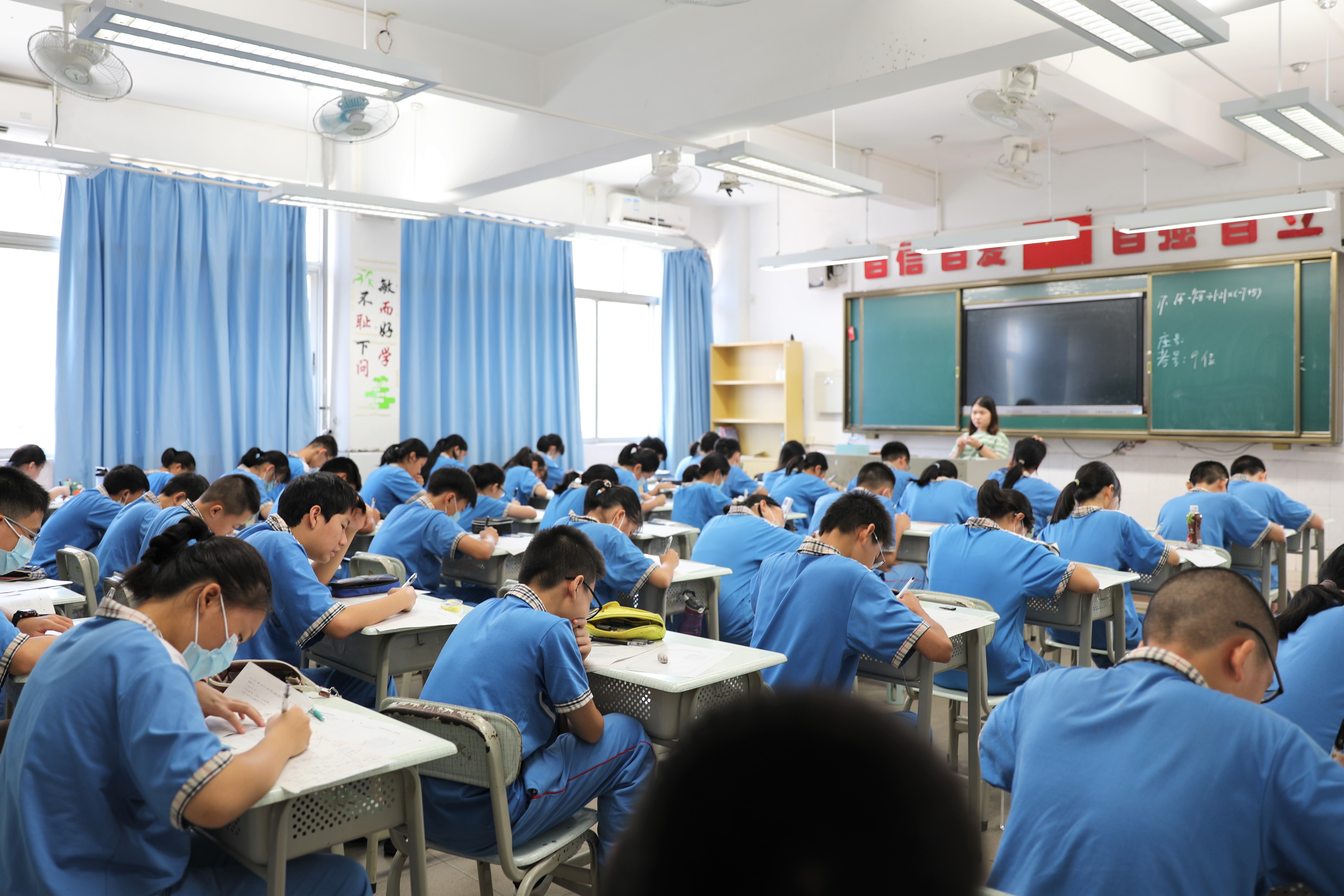 中学七年级的学生们还在校外基地接受专业的军事训练。为了解学生在暑假期间的自主学习情况,八、九年级进行了开学前的学情调研,并将根据调研情况有针对性地制定新学期教学计划。
