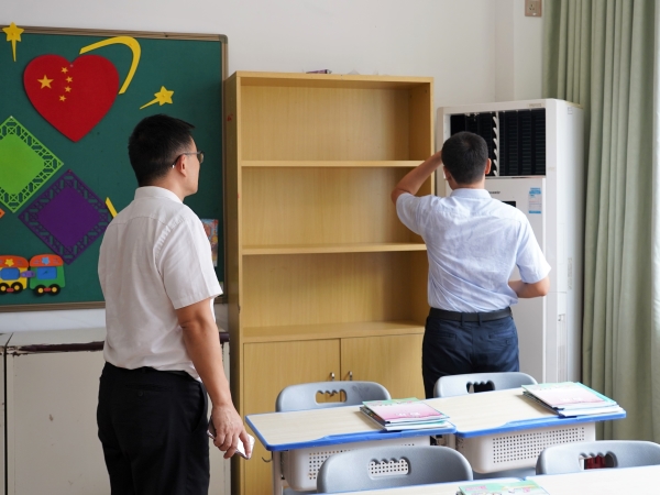 8月30日下午,方建军校长、涂筱辉书记、朱中振校长助理、黄哲昙校长助理及部分中层干部,对各部门开学前准备工作进行了巡查,着重检查了校园及各场室的卫生、物品放置、文化氛围营造等,针对部分存在的安全隐患及未完善的工作提出了整改意见,确保学生开学的安全及舒适。