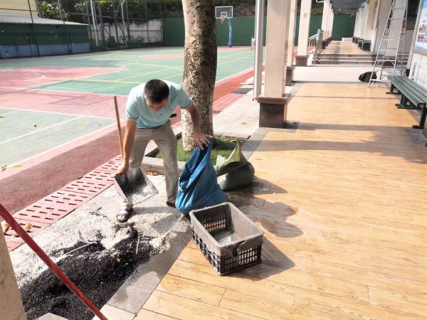 为了给孩子们一个干净卫生、安全舒适的校园环境,我校的防疫及后勤人员细致地做好了校园消毒、设备检修等工作。暑假期间,还对操场、部分卫生间、尚行楼前空地等场所进行了修葺。