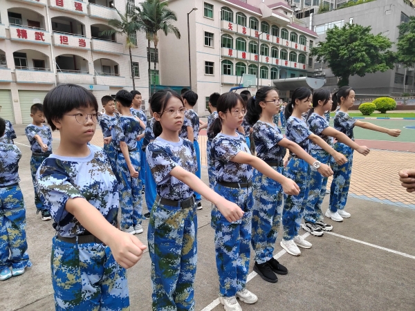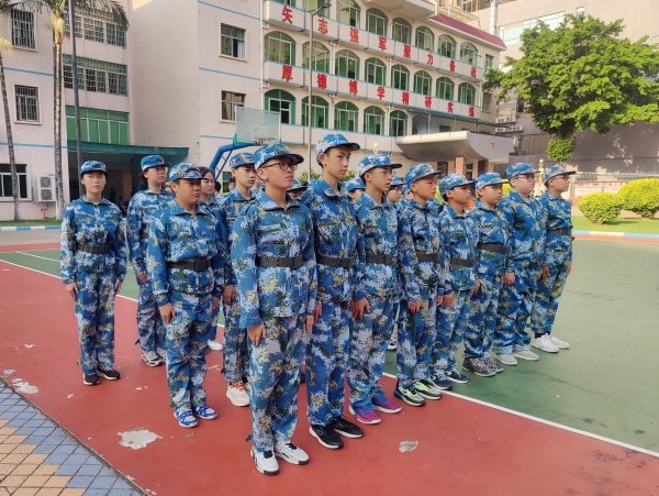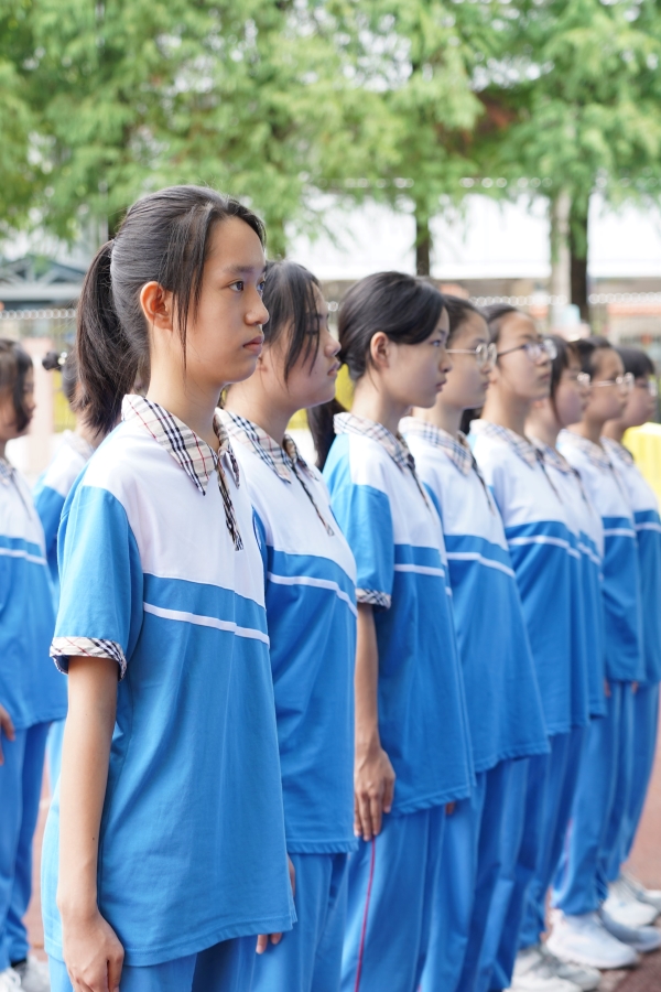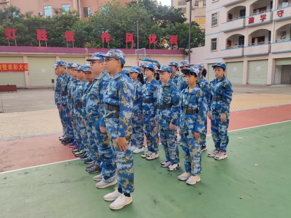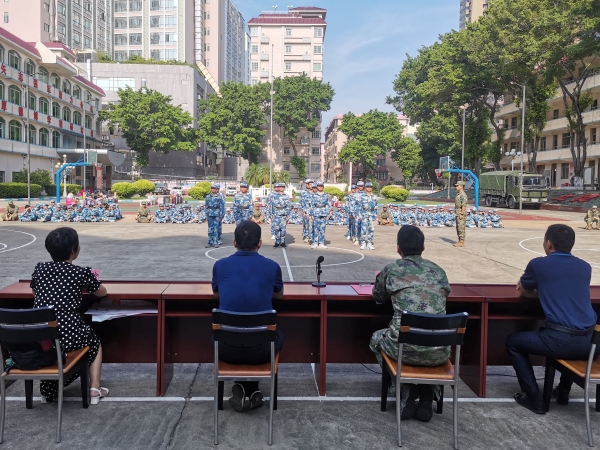 学校党支部涂筱辉书记、中学学生发展中心胡琴主任、初一年级组长肖梅玲老师、全体承训的教官以及初一级全体师生出席了开训典礼。