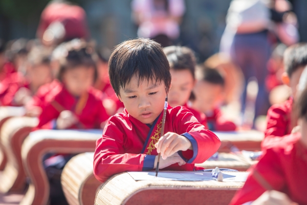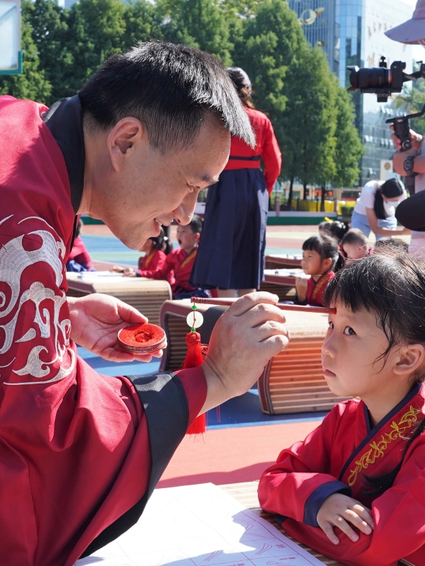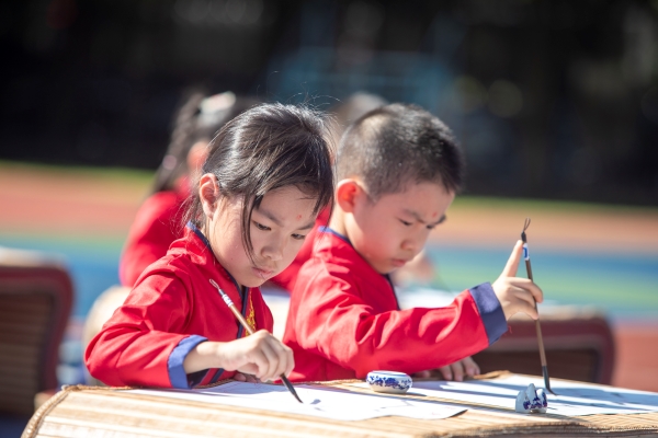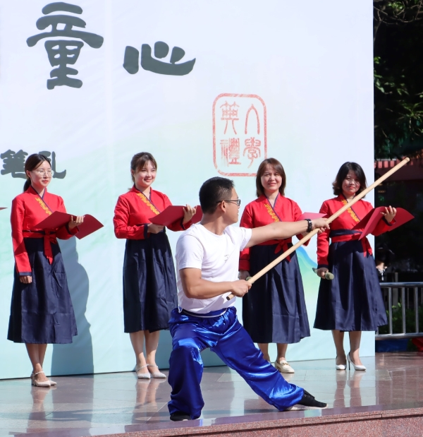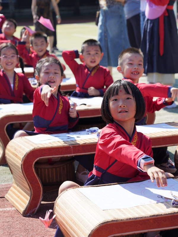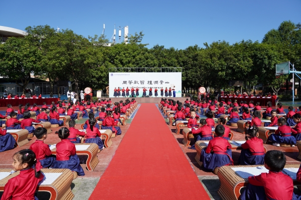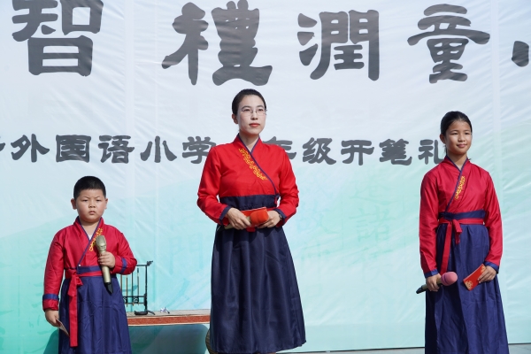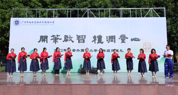 为了激励小一新生们珍惜读书的时光,激发他们的求知求学的热情,增强他们对中国传统文化的了解,2022年9月9日上午,在这个寓意长长久久的日子里,白云外国语小学在学校大操场隆重举行了“开笔启智 礼润童心”一年级新生开笔礼。广外教育集团罗海洋书记、全体校领导、中层干部、一年级师生和部分家长代表参加了活动。由孙伟老师、六年级陈芷汀同学和一年级徐奕芃同学共同主持。