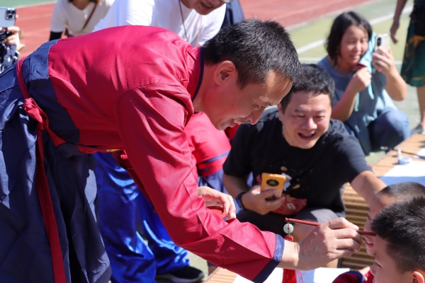 在古代,学童入学读书前,都会有启蒙师长用红色的朱砂在学子们的额头正中点上红痣,称为“开天眼”。领导和老师们手执朱笔,轻轻地在孩子们额头上点上一抹红色印记,点朱砂痣,寓意开启学童智慧,推开知识的大门,从此心明眼亮,勤奋读书,品行端正,健康成长。