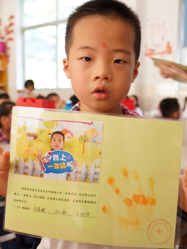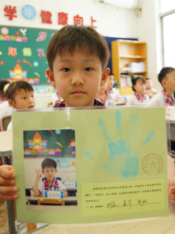 2022年9月1日是小一新生们成为小学生的第一天,在这一天,学校给每一位小一孩子拍照留念。孩子们用手印记录下自己成长的印记,学校把孩子们的照片和手印做成了卡片,送给每一位家长珍藏!