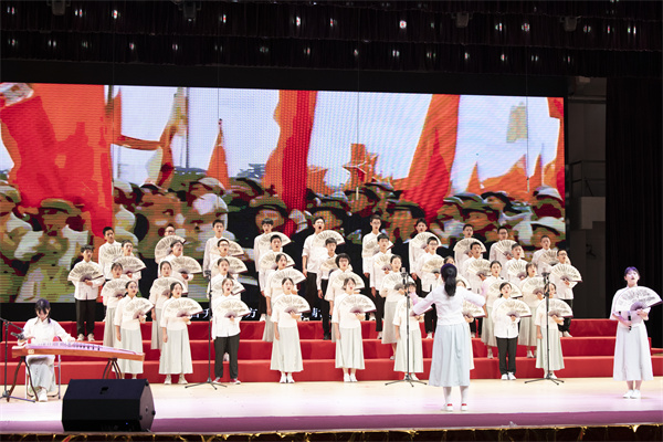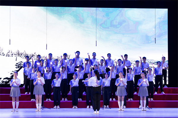 各班级参赛的合唱节目形式丰富,在音乐的基础上加以乐器、舞蹈、书法、情景剧等等的元素,精彩纷呈。一首首动人的歌曲让人心潮澎湃,他们着装整齐,歌声嘹亮,用音乐唱出对祖国的赞美、对美好生活的热爱。