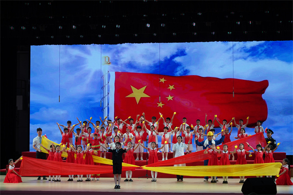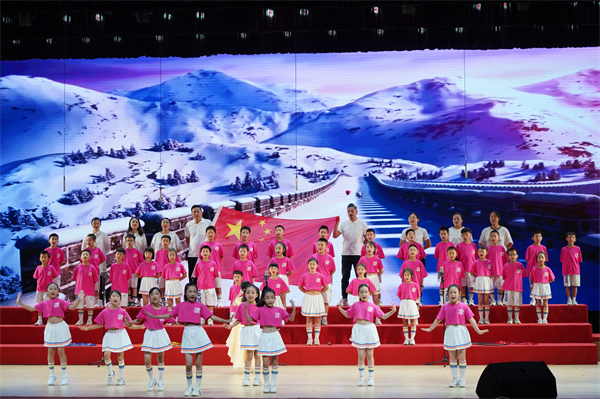 中国,一个响亮的名字。山河壮美,繁荣昌盛,我们为腾飞的祖国点赞,我们为腾飞的祖国喝彩!我们都是中国的孩子,我们永远不分彼此。寄出的爱虽然不同地址,却写下相同文字。扬帆起航,共享今朝明朝。让我们拉起手,环抱世界,一起向未来!