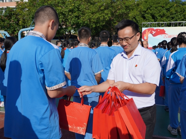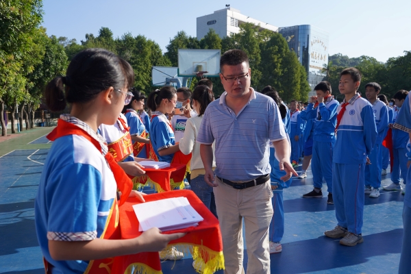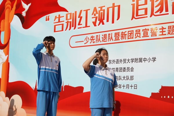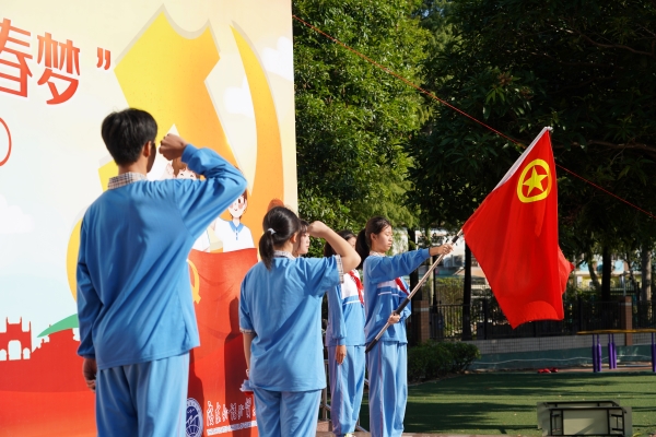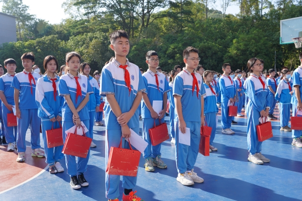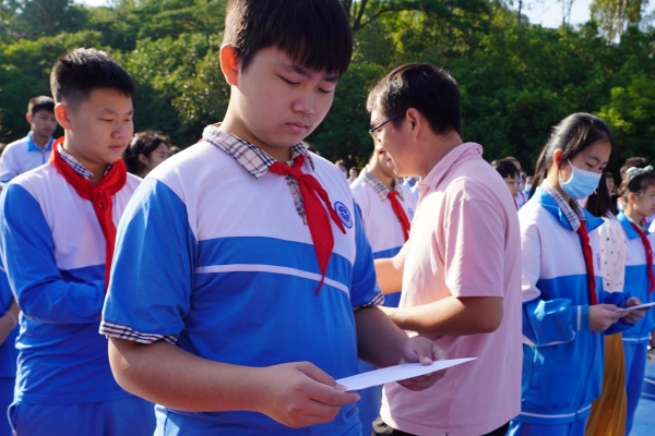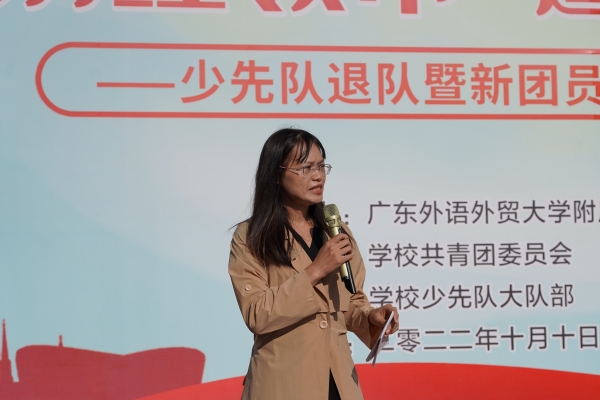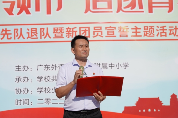 为迎接中国共产党“二十大”的胜利召开,传承红色基因,激励青少年成长。白云外国语中学于2022年10月10日上午在学校大操场举行了以“告别红领巾,追逐青春梦”为主题的少先队退队暨新团员宣誓主题活动。方建军校长、涂筱辉书记及中学全体师生出席了本次活动。