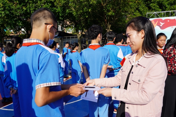 学校领导、班主任和科任老师也为退队的少先队员们送上学校精心准备的一份成长礼。