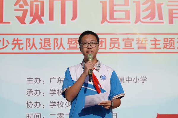接着,由大队辅导员邓少林老师宣布少先队退队决定。