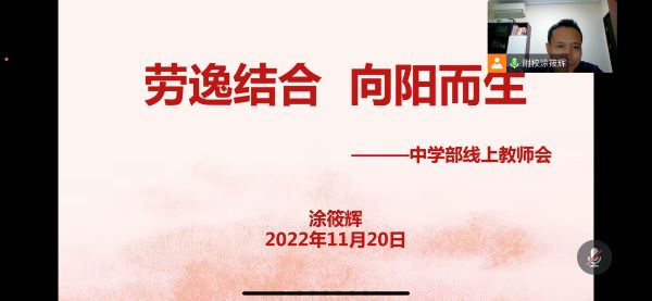 守方寸小屏,倾偌大用心。为了确保线上教学的高效质量及线上综合训练顺利开展,白云外国语中学于11月20日通过腾讯会议平台进行全体教师会。
