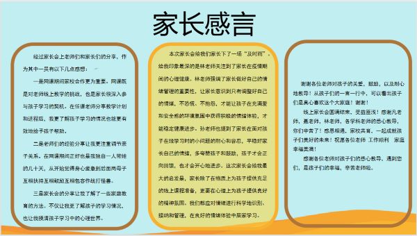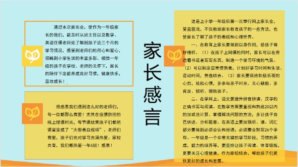 家长们在家长会后给老师们留下参会感言: