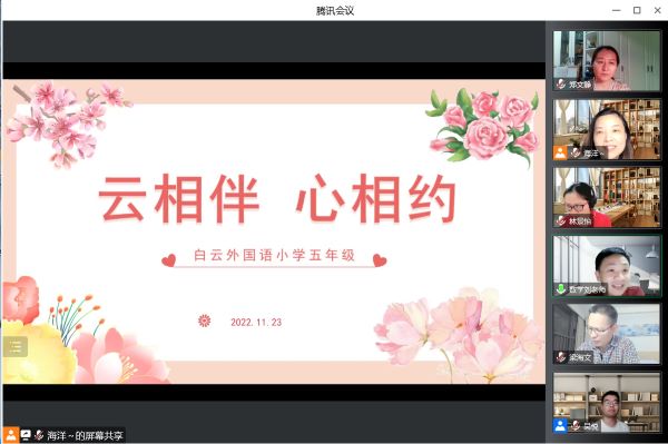 六年级组的老师们在2022年11月16日晚上8:00齐聚腾讯会议,开启了白云外国语小学第一场年级组教师会议。聊聊自己网课期间的幸福二三事。