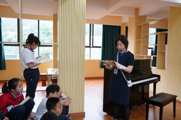 学校依托广东外语外贸大学丰富的外语教育资源,秉承国内外外语教学的前沿理念,探索理论引领+科研、教学一体双翼的教育教学模式,创设了戏剧英语为特色的外语课程体系。