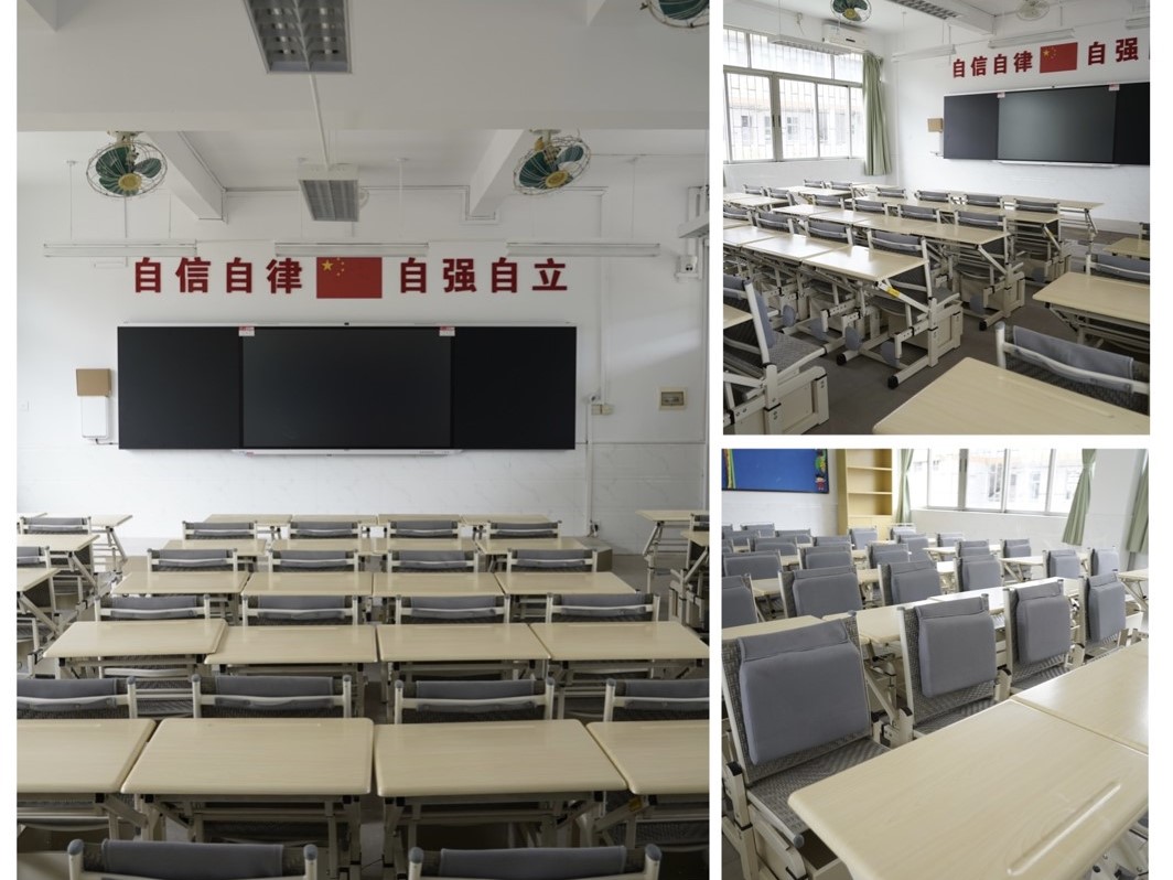 在暑假期间,我校对部分功能室、教室、办公室、卫生间进行升级改造,更新了一批讲台、学生桌椅、办公桌、电脑,改造了灯光、电路,贴上崭新的标语,安装了隐形防盗网。对饭堂进行全面的装修,引进专业的餐饮团队;全面改造校史室,打造广外附校的“门面”,展示我校的办学历史与成绩,讲好广外附校的故事。按时消毒与清洗直饮水设备,全面做好校园的卫生清洁工作,保障师生拥有健康的办公与学习环境。