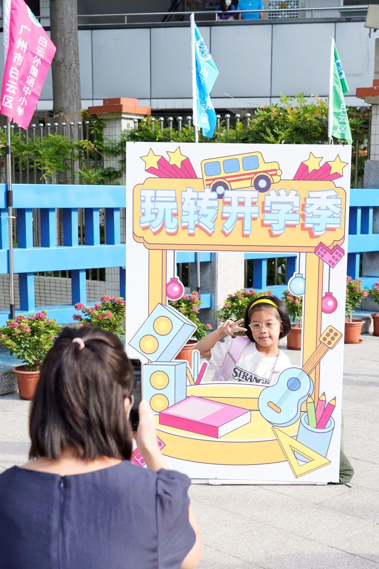 8月30日,活泼可爱的小一新生们牵着爸爸妈妈的手走进校园,在合影区拍照留念,用相片记录下这重要的时刻,正式开启小学新征程,仪式感满满。