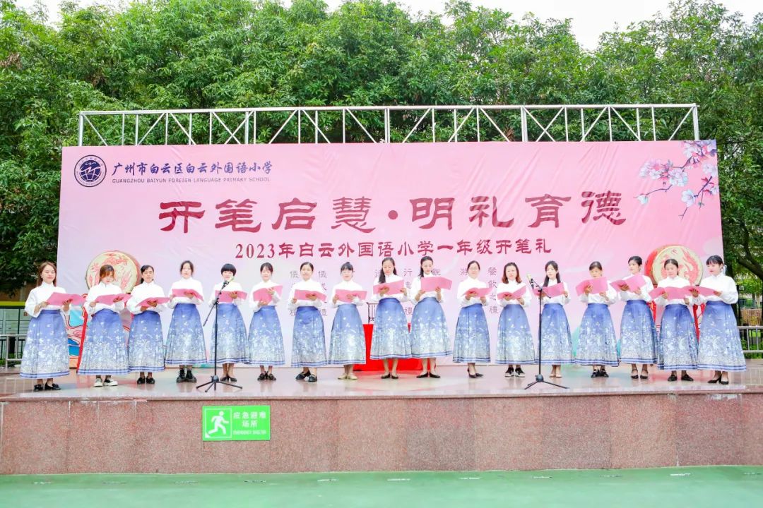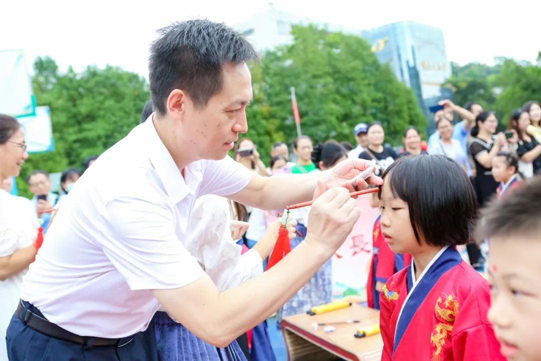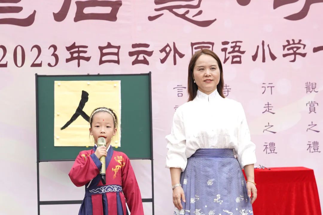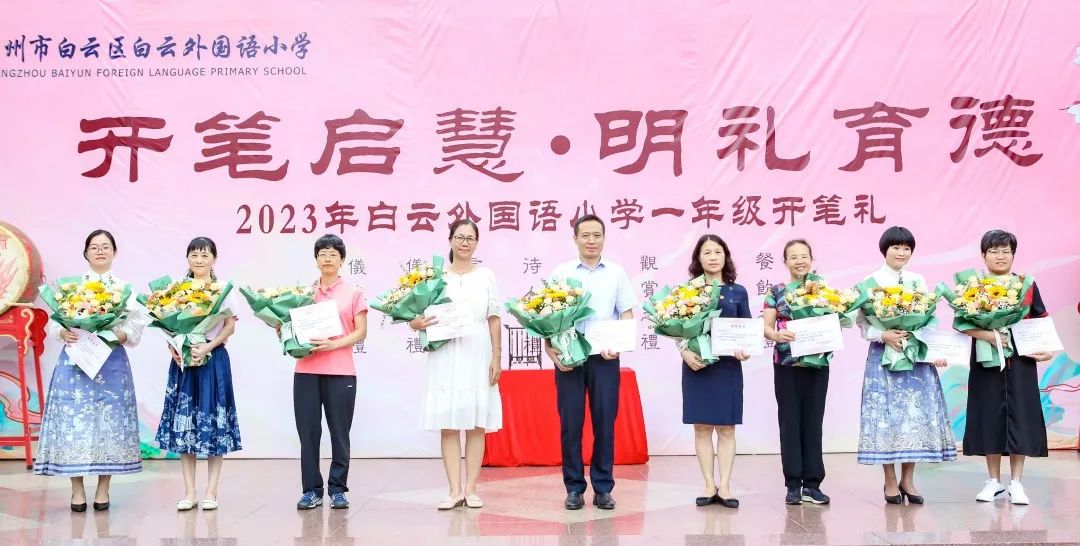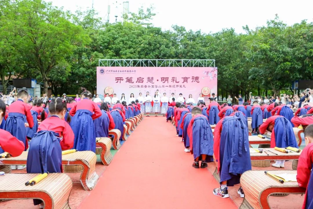为了让一年级新生感受到入学是人生中的一件大事,是学习的开始,激励他们珍惜读书机会,勤奋学习,弘扬我国优良的传统文化,2023年9月13日上午,白云外国语小学在学校大操场隆重举行了“开笔启慧·明礼育德”一年级新生开笔礼。广东外语外贸大学教育合作与发展中心党委副书记、纪委书记贺静,我校全体校领导、中层干部、一年级师生和家长们欢聚一堂,共庆一年级“开笔礼”。