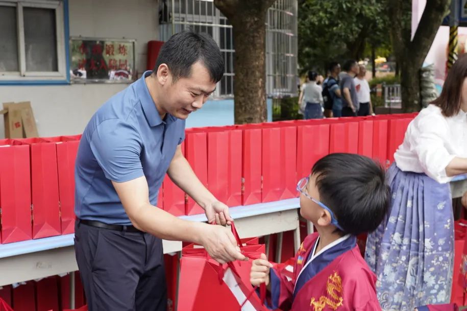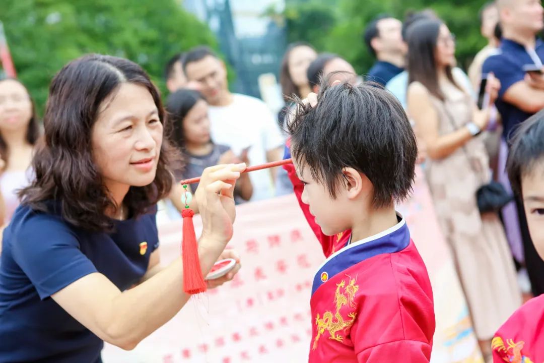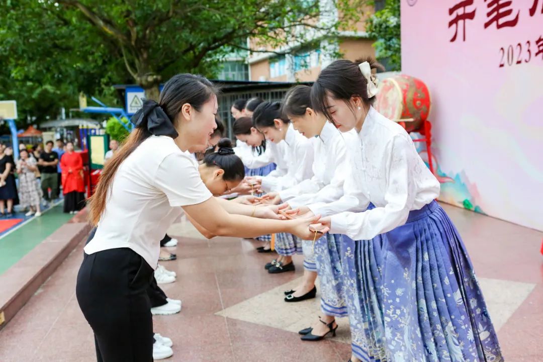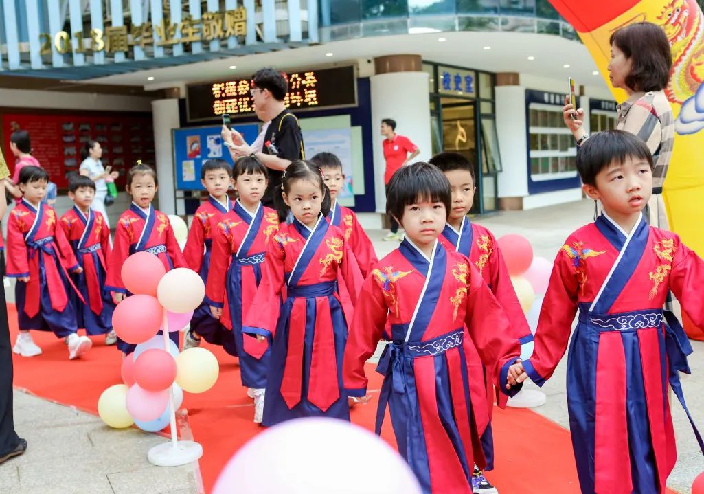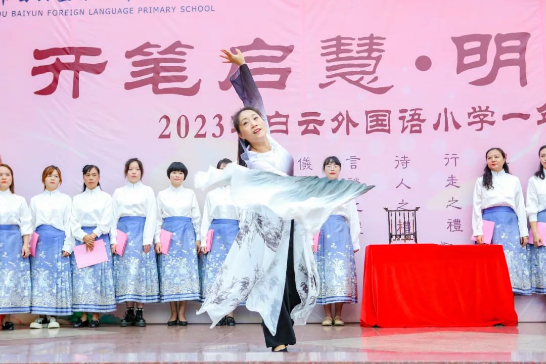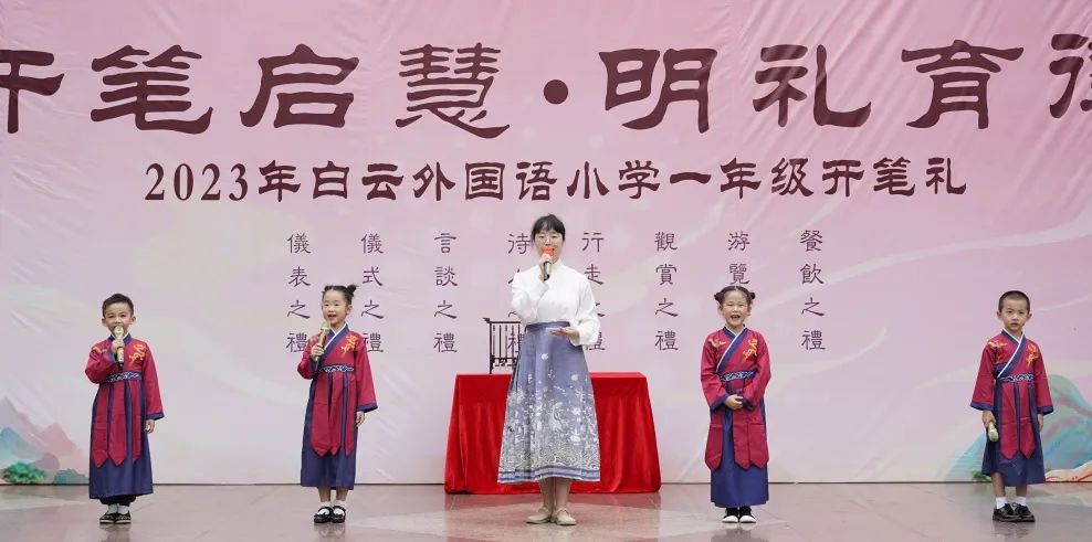 为了让一年级新生感受到入学是人生中的一件大事,是学习的开始,激励他们珍惜读书机会,勤奋学习,弘扬我国优良的传统文化,2023年9月13日上午,白云外国语小学在学校大操场隆重举行了“开笔启慧·明礼育德”一年级新生开笔礼。广东外语外贸大学教育合作与发展中心党委副书记、纪委书记贺静,我校全体校领导、中层干部、一年级师生和家长们欢聚一堂,共庆一年级“开笔礼”。