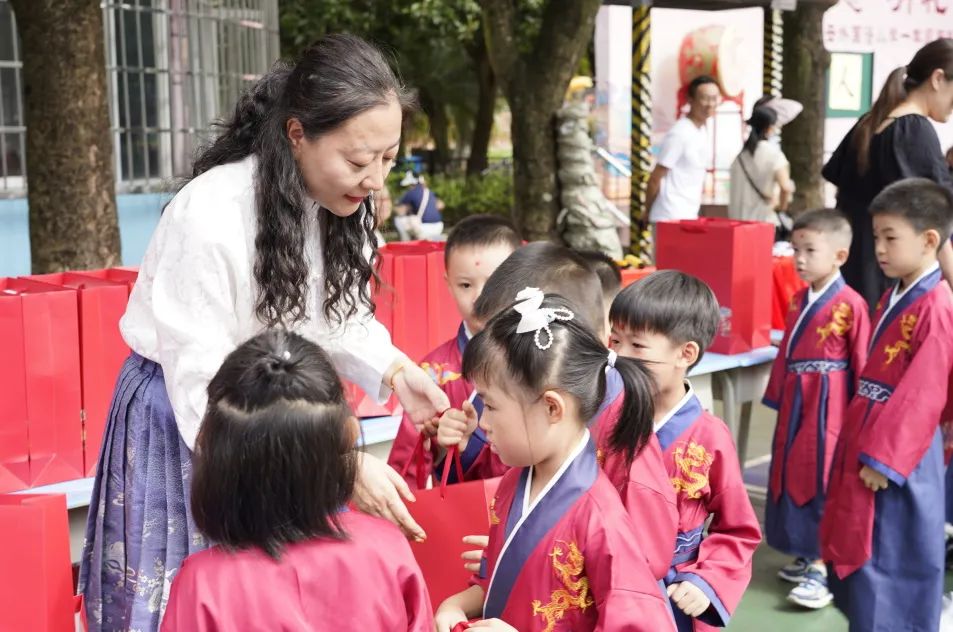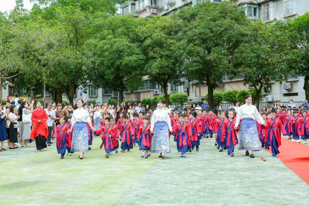 朝气蓬勃的一年级新生们在老师的带领下走过启智门,开启人生路上的智慧之门。希望学子们在感受传统文化浸润身心的同时,“尊师爱学、孝顺父母”的种子也在心中生根发芽。