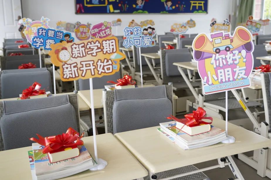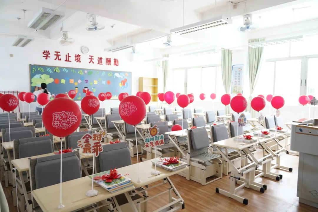 各班班主任与科任老师提前用气球、装饰牌、糖果、鲜花等,把各班的教室布置得温馨而舒适,每个角落都充满了班级的特色,给孩子们满满的仪式感。