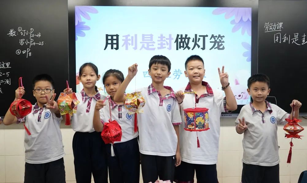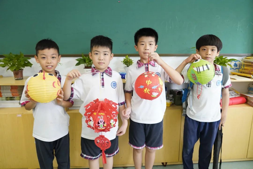 白云外国语小学各年级通过巧手做灯笼、猜灯谜、折玉兔、绘制国庆主题手抄报等活动,迎接中秋佳节,庆贺祖国华诞。