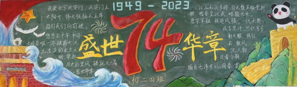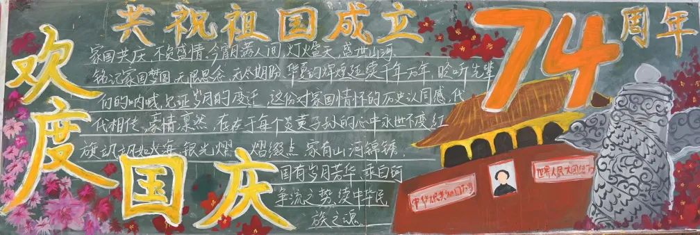 中学各班同学利用课余的时间,围绕国庆相关主题,发挥天马行空的创意,绘制出一幅幅精美绝伦、内容丰富、形式多样的黑板报,真挚的祝福语、排版整齐的文段,表达了孩子们对祖国的热爱与美好祝福。