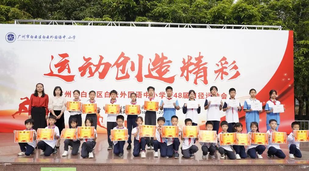 自白云外国语中小学第48届体育节开幕以来,我们陆续进行了中小学“校长杯”篮球赛,组织学生参加新市片运动会,组织教职员工参加线上健步打卡,并在2023年10月26-27日举行了第48届校园田径运动会。10月30日清晨,学校进行了校运会的总结和颁奖仪式,并宣布本届校运会及体育节圆满闭幕。