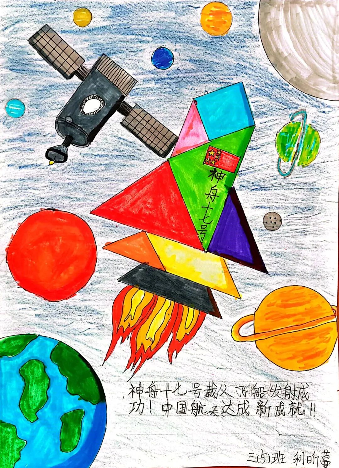 三年级的学生动手又动脑,充分发挥自己的想象力和创造力,利用七巧板,拼出一份份新颖的作品,同时感受到了七巧板的神奇与魅力。