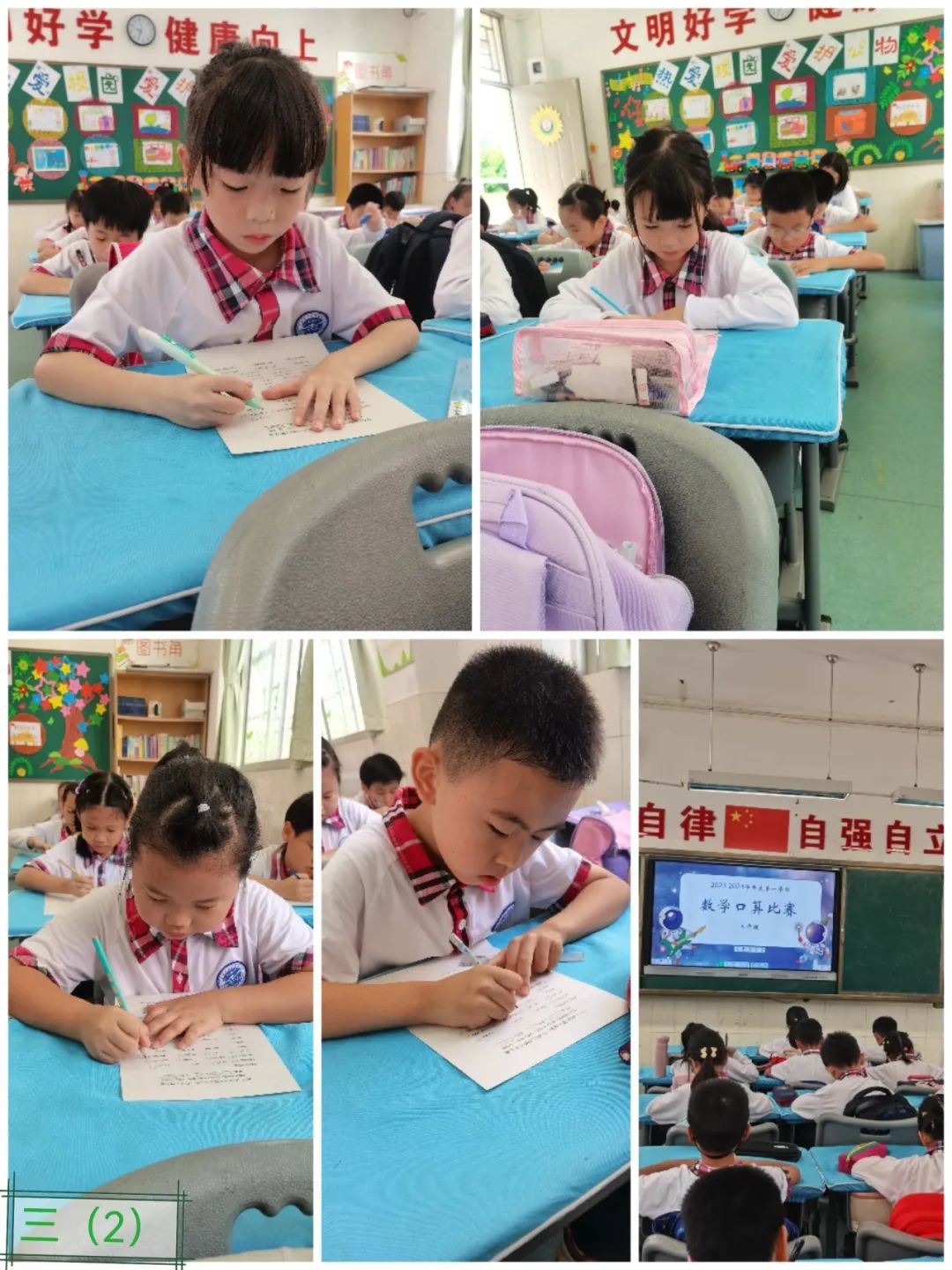 铃声一响,每位学生迅速进入竞赛状态,全神贯注地做好“作战”准备。比赛中,同学们认真工整地书写、作答,细心演算。教室里,只听得笔尖在纸上“刷刷”游走的声音,有的同学眉头紧锁,有的同学下笔如飞,都力争在有限时间里计算出最多的算式,仿佛个个都要争当计算小能手。