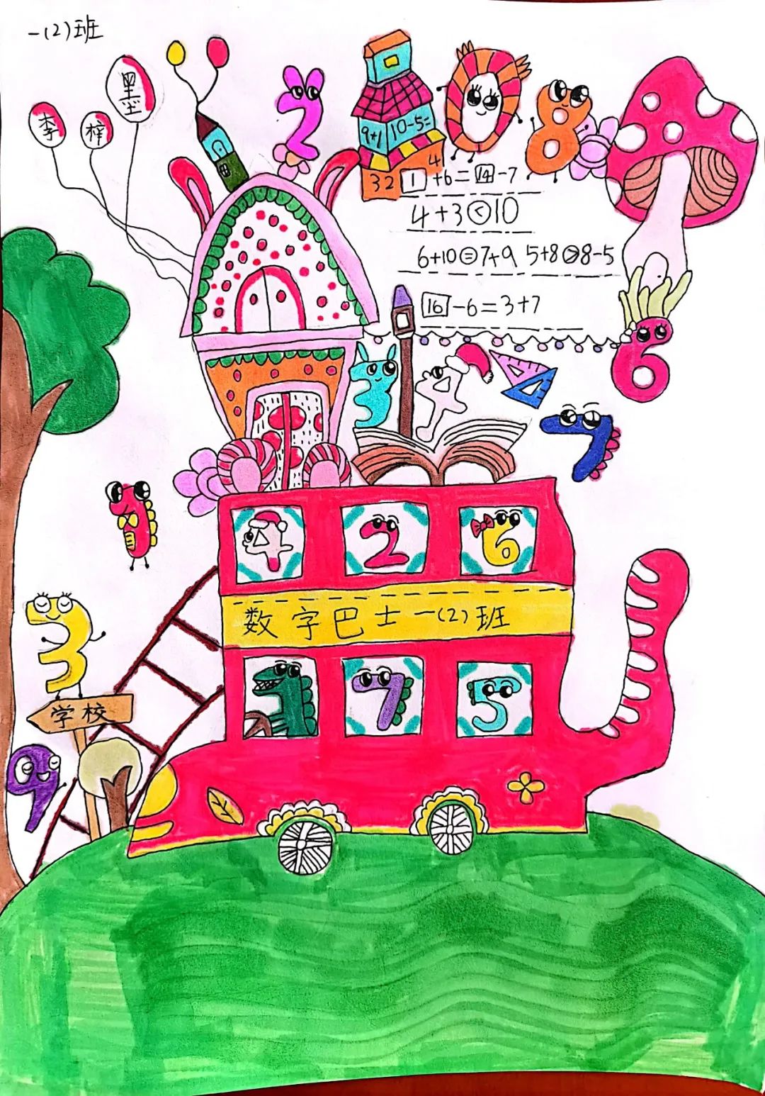 “数中有画、画中有数”,一年级的学生用丰富的想象力,将数字变成一幅幅生动有趣的数字绘画。每一幅画都呈现了学生自己的想法,赋予了数字丰富的意义。