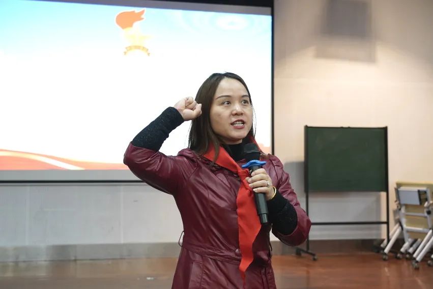 最后一项,聂芹副主任带领大家呼号,新队员们举起右拳,齐声高呼:时刻准备着!