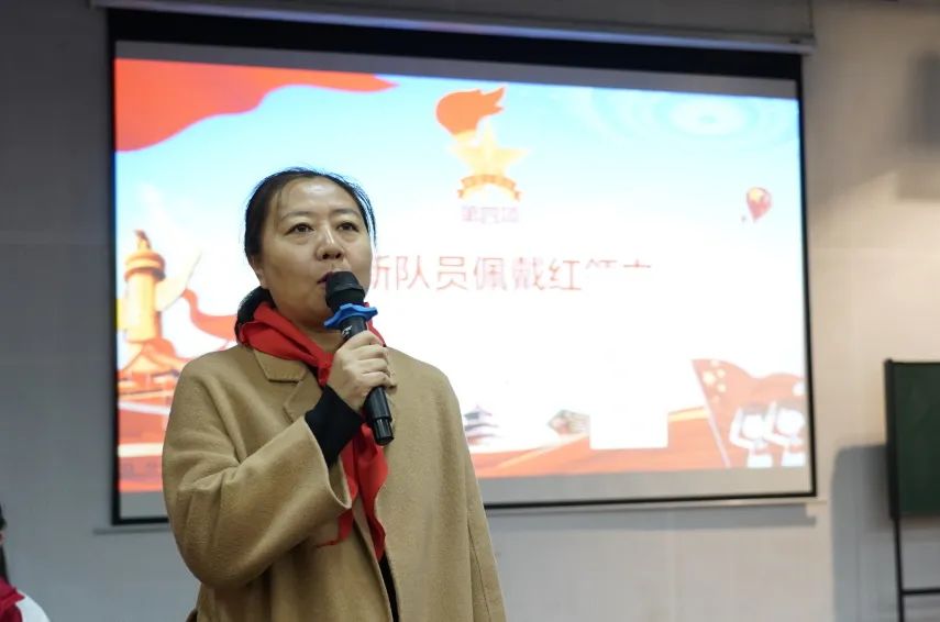 激昂的歌声过后,活动进行到了第二项。学生发展中心郑文静主任宣读了第二批少先队员的名单。新队员们激情澎湃,在听到自己的名字后,眼睛里是难以掩饰的激动。同学们上台后,黄哲昙副校长、郑文静主任、聂芹副主任、任课老师以及班主任为新队员佩戴红领巾,老师们对新队员敬礼表示祝贺,新队员对老师们还礼,表示感谢。在热烈的掌声中欢迎他们进入到这个大家庭,整个流程紧凑而又有序。