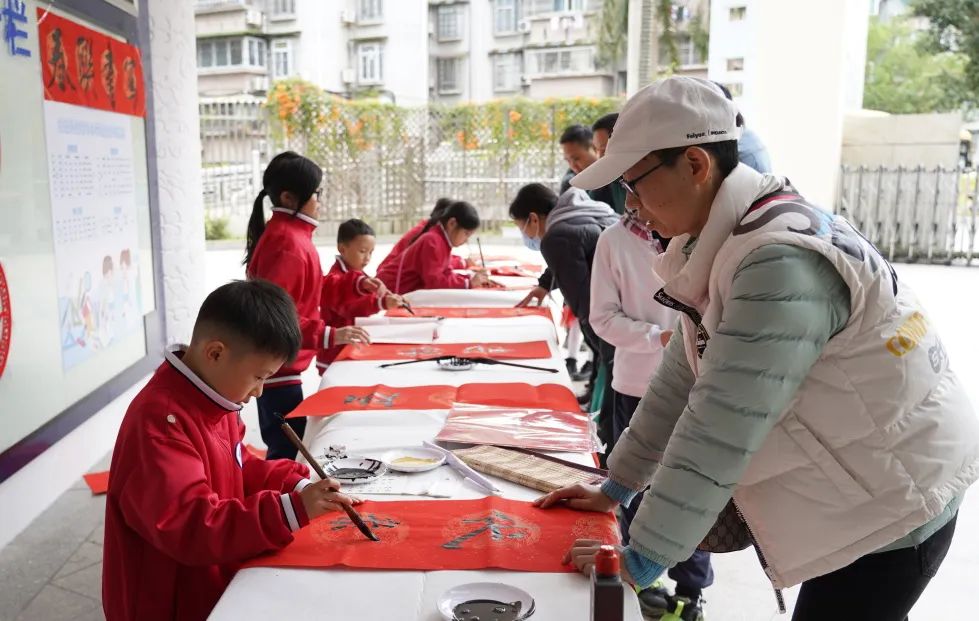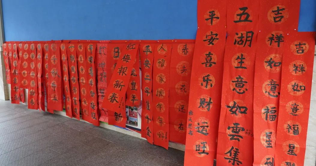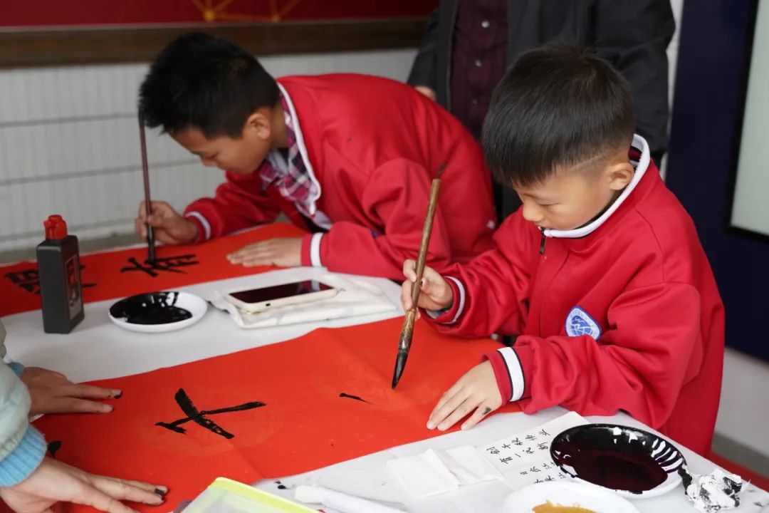 翰墨飘香,在比赛现场,老师们早早准备好了比赛现场需要用到的宣纸、墨水、砚台等材料,家长志愿者在场协助。参赛同学即席挥毫,一副副对仗工整的对联跃然纸上,表达了同学们对生活的美好祝愿。
