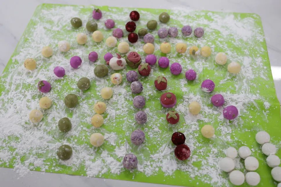 通过以往在学校劳动课中掌握的方法与步骤,同学们对“汤圆”已经有了一定的了解和实践,对于本次比赛胸有成竹。开始制作汤圆,捏皮、填馅、搓圆......动作娴熟、一气呵成,一团团糯米粉变成了一个个圆滚滚的汤圆。