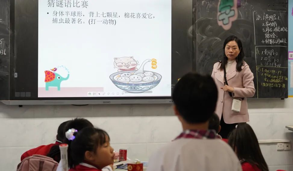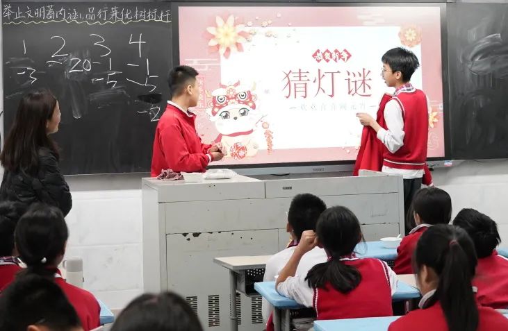 小商会结束后,同学们回到各班教室进行猜灯谜活动、品尝汤圆、进行才艺表演等。