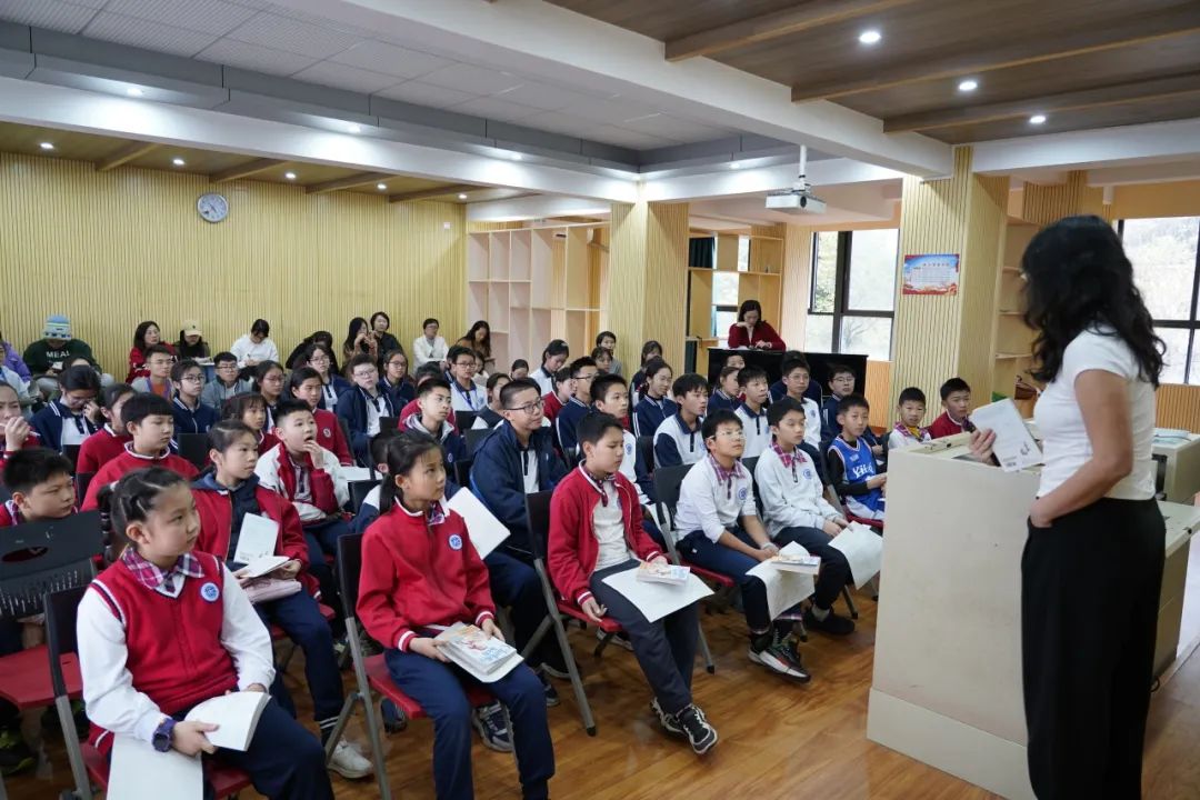 2023年3月13日下午,整本书阅读的第一堂课在我校音乐室拉开序幕。蔡欢副校长亲自给小学五年级和初一年级共50余名学生授课,30余名老师和实习教师听课。广外教育合作与发展中心的高宇老师、江建老师、潘李南老师也亲临现场观摩。