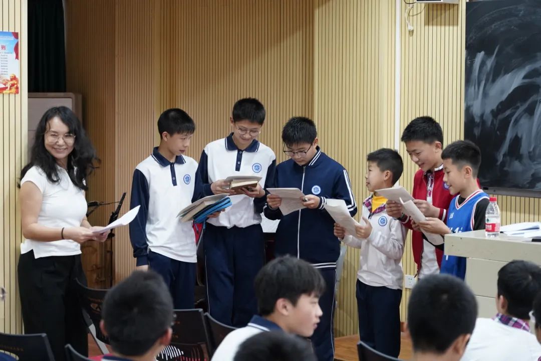 蔡欢副校长通过学生听读、用AI技术创建剧本、学生小组戏剧表演、围绕文本提问等多种方式,把孩子们带到了“网“的世界。