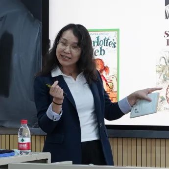 她表示在语境中猜测单词意思是一个很重要的能力。所以,整篇阅读的重点一定不是单词,而是情节的发展,人物刻画,普世价值观的传达。只有大量的输入,才会有语感的形成,学生才会有大量的输出。而第一本小说的阅读往往是最困难的,因为学生要克服的是大量单词量带来的恐惧心理,对老师的挑战也是非常大。但如果顺利完成第一本书,就像给学生插上了翅膀。当尝到了阅读的甜头,学生们一定会去主动寻找更多的书籍阅读,这样大量的语言输入才会成为可能。