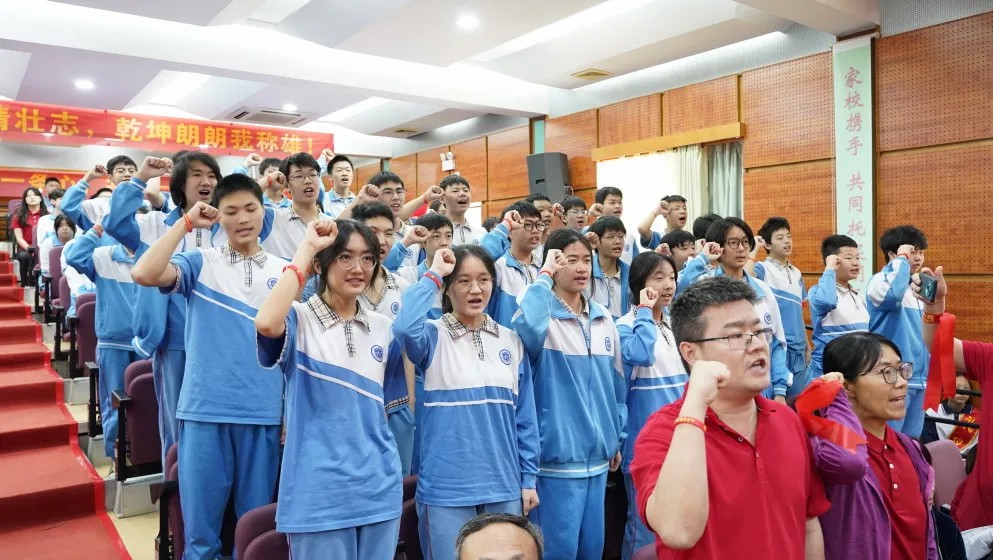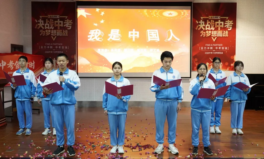 句句叮咛语,片片师爱心,学生们收到了老师们的勉励和祝福。老师们宣誓与学生同心向上,携手奋战一百天,“甘将心血化时雨,润出桃花一片红。”