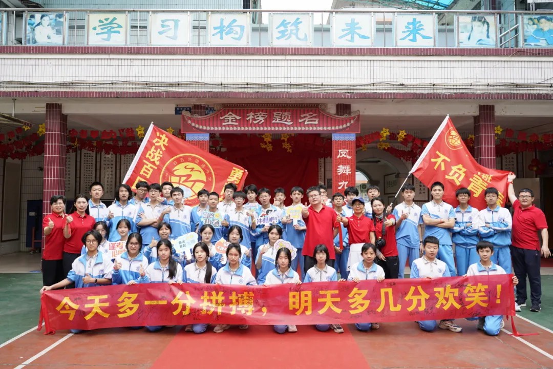 志当存高远,梦想永无畏。为切实抓好初三年级中考考前100天的教育教学工作,充分调动全体初三级师生工作、学习积极性,进一步激发师生的工作和学习热忱,更好地备战中考,2024年3月22日,广州市白云区白云外国语中学举行了中考百日冲刺誓师大会和白云山摩星岭许愿之旅。我校各级领导、家长代表及全体初三级师生参加了活动。