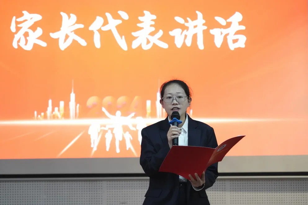 人世间,最深的爱莫过于父母爱,最深的情莫过于父母情。他们无不在“望子成龙两鬓霜,盼女成凤一世忙”,他们是孩子们备战中考的坚强后盾。初三(3)班邹铂鋆同学家长戴姣女士作为家长代表发言,她鼓励孩子们要相信自己,激励同学们要全身心投入到紧张的复习当中去,勇敢地去面对未来的挑战,努力拼搏,并向辛勤耕耘的老师们致以最诚挚的感恩,向每一个拼搏奋进的孩子致以最温暖的祝福。