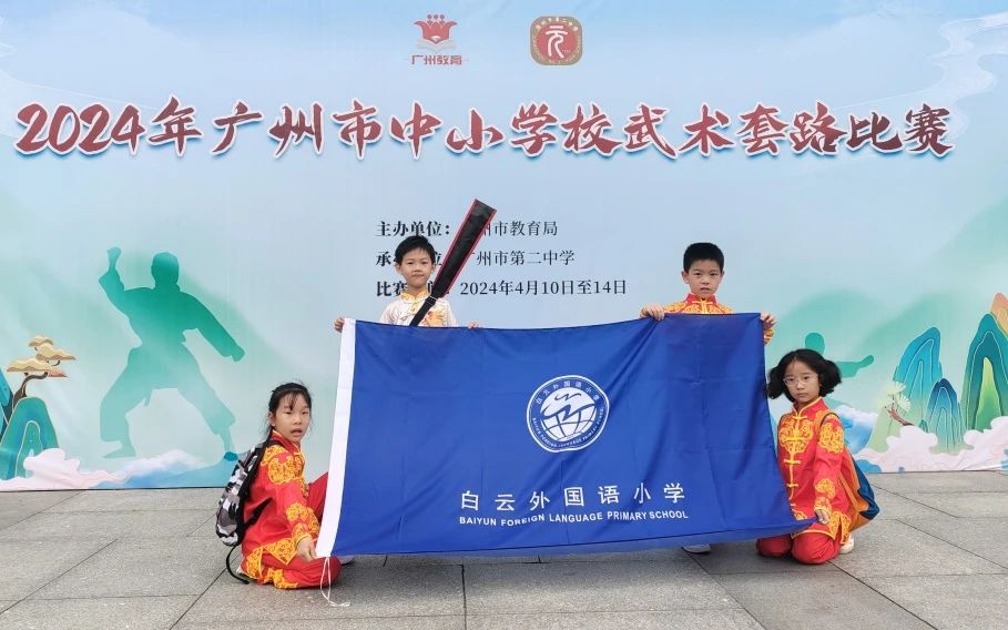 2024年4月11-14日,广州市中小学生武术比赛在广州市第二中学(科学城校区)隆重举行,来自广州市的97所中小学,共计875名运动员同台竞技。我校作为白云区推荐参赛的五所学校之一,共派出9名运动员分别参加小学甲、乙、丙组不同项目的角逐。