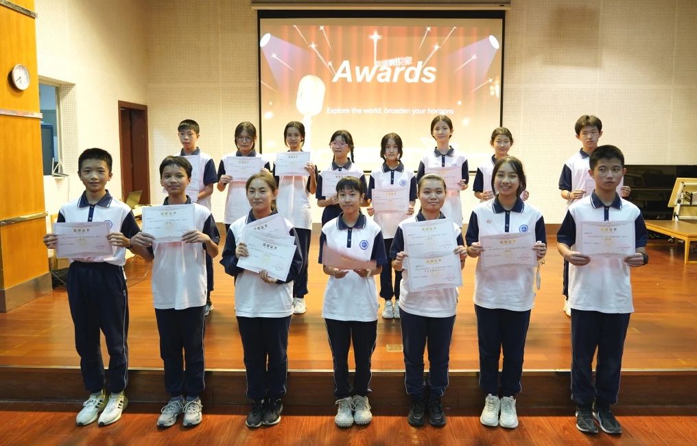 个人奖项方面,朱沛欣、苏鹏羽等共10位同学荣获“最佳语音语调奖”,黄小翔、马义云等共10名同学获得“最具活力奖”,黄初庭、闫馨文等共7名同学凭借其出色的舞台表现获得了“最佳台风奖”。团体奖项方面,初三4班、初三3班等班级分获特等奖和一等奖,初三2班、初三1班获得二等奖。(具体获奖名单如下)