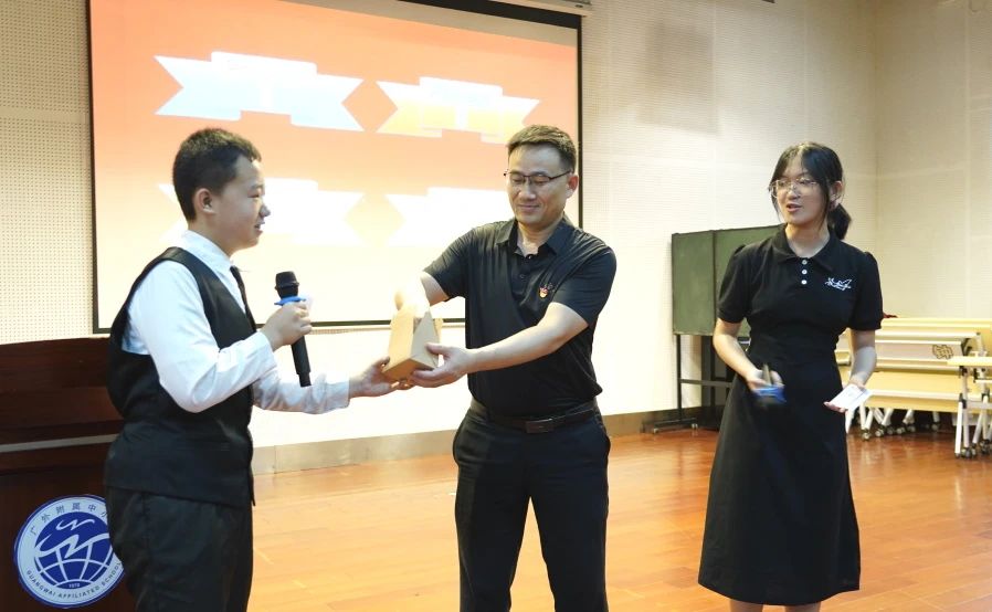 随后的两个随机朗读环节中,方建军校长、初中英语科组长郑丹娜老师和各班班主任老师分别从纸箱内抽取学号,被抽中的同学们也毫不怯场,勇敢地走上台,进行个人朗读和团体朗读。他们的表现赢得了在场师生的阵阵掌声。