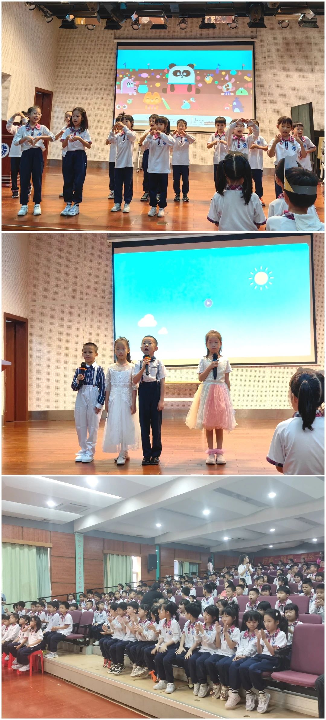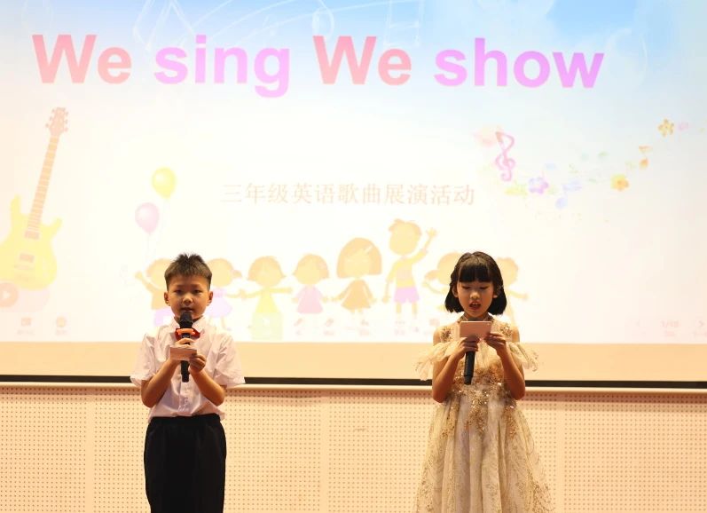 4月22日早上,三年级同学在礼堂进行了期待已久的歌曲展演活动We sing We show。孩子们在舒缓的音乐中缓缓进场,被一个又一个精彩的班级展演曲目点燃激情。在美妙的歌声中,在标准的英语发音中,孩子们沉浸其中,感受英语歌曲的魅力,激发了语言学习的热情!