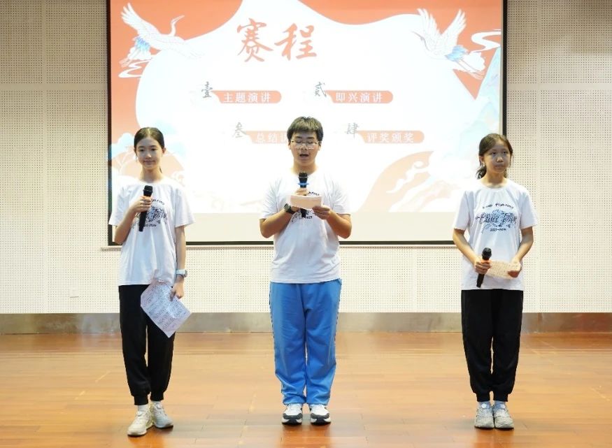 比赛分为主题演讲和即兴演讲两个环节。在3分钟的主题演讲中,同学们深入浅出地分享了对小说的理解和感受,展现了他们对文学作品的独到见解。紧接着的1分钟即兴演讲则考验了他们的应变能力和语言组织能力,同学们表现出色,令人印象深刻。