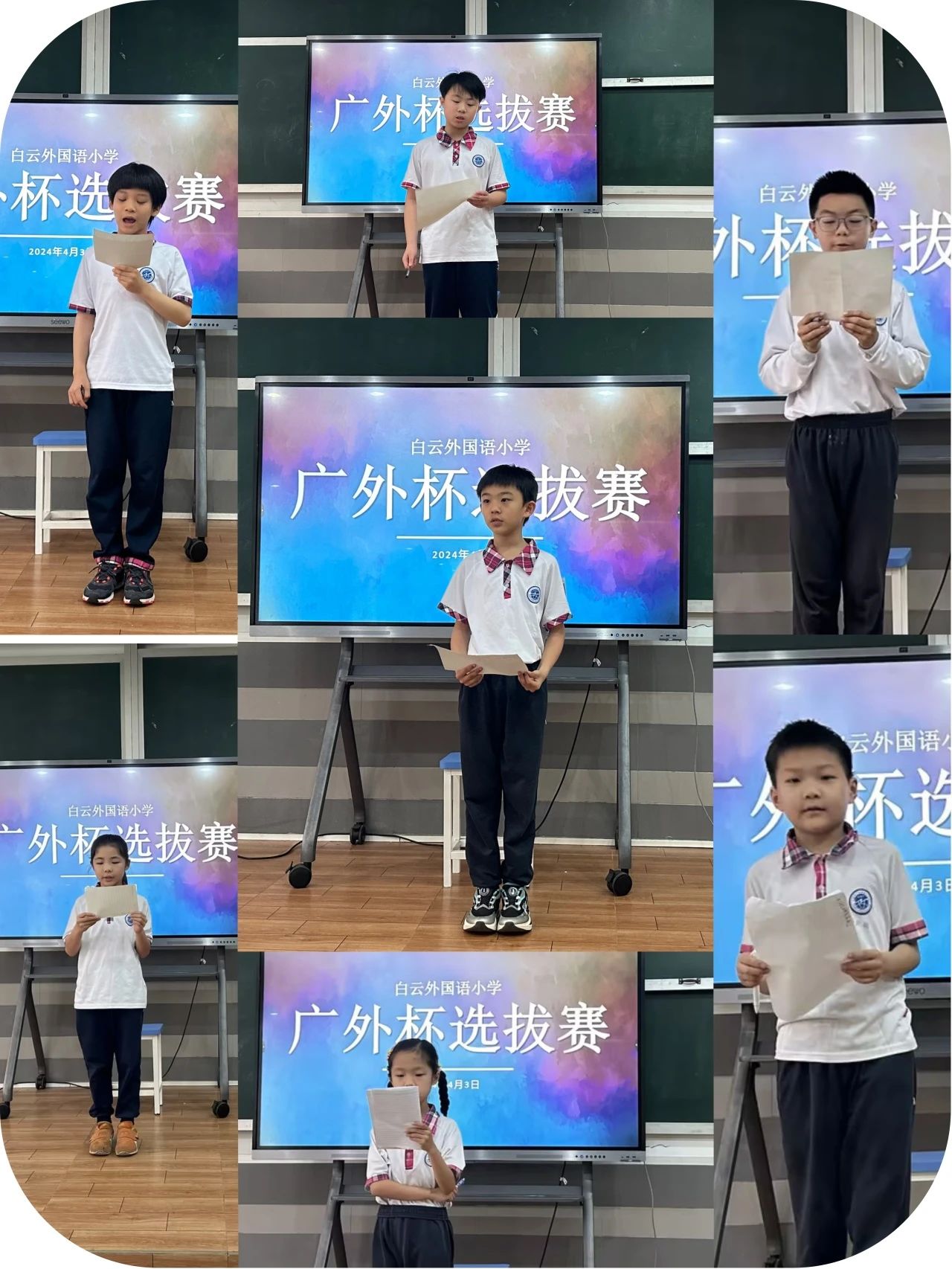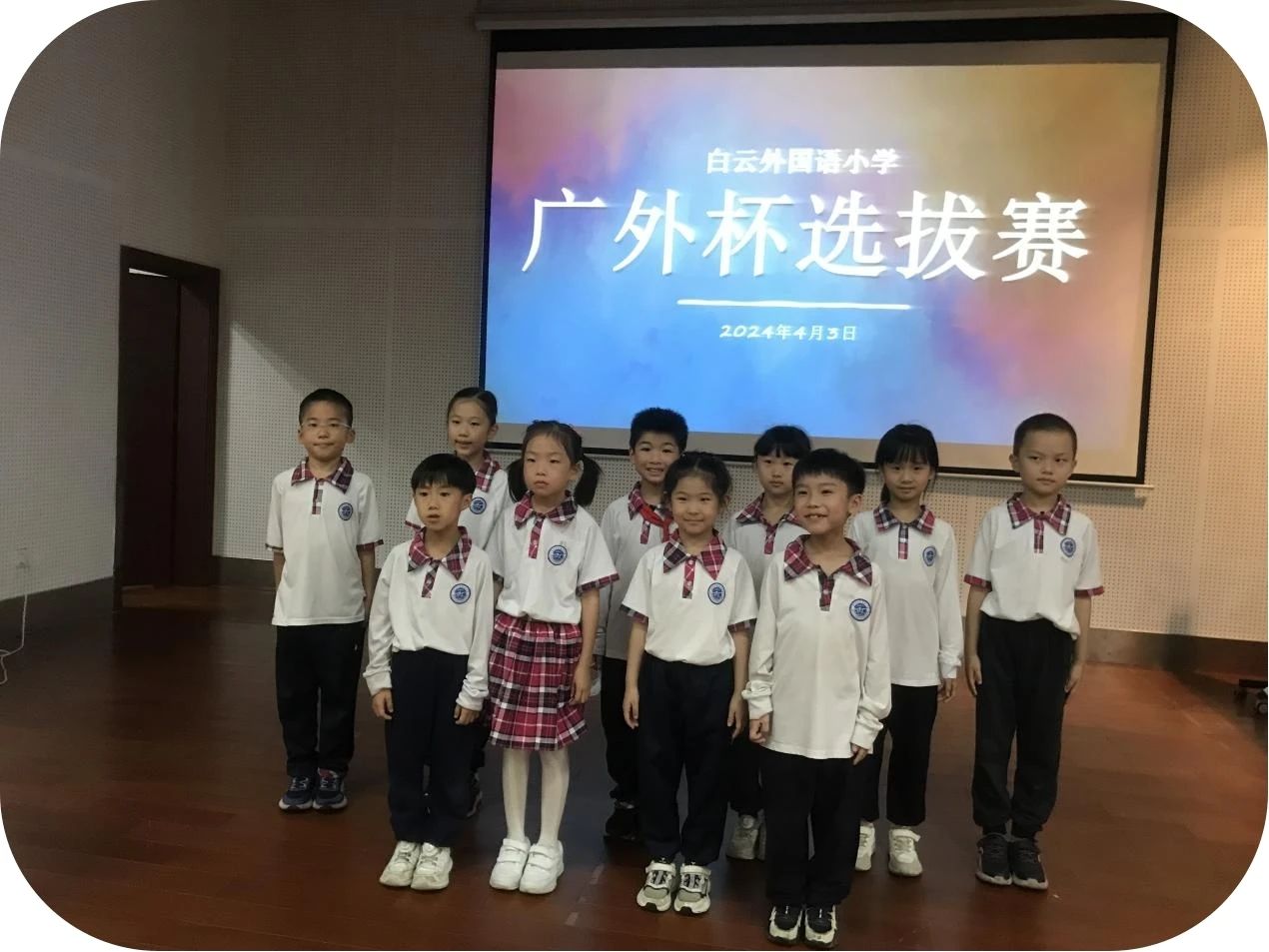2024年5月24日,由广外教育集团主办的第八届“广外杯”中小学生英语能力大赛在广外白云山校区云山会堂举行。来自17所附校的58支队伍参加了横跨1-8年级、四个层级的晋级赛,经过激烈的角逐,最终有来自12所学校的28支队伍顺利进入总决赛。我校英语教师陆巧玲、外教Jake担任本次大赛的教师主持。