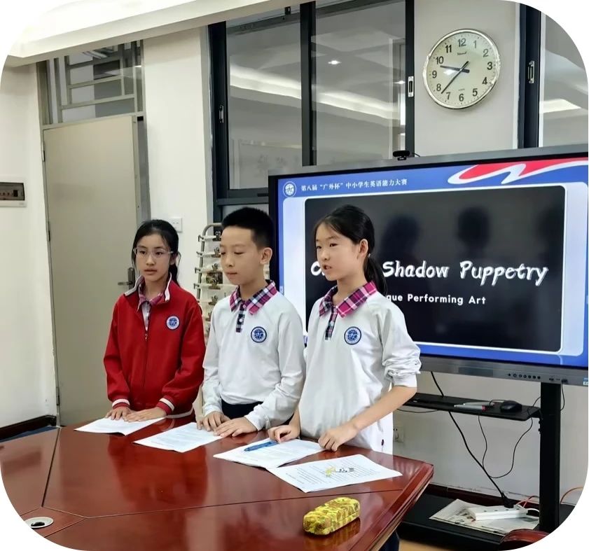 在蔡欢副校长的指导下,由中小学英语科组长郑丹娜、喻安婷老师以及中小学英语科组老师带领选手们积极备赛,5月24日下午,四支队伍带着饱满的热情和坚定的信心来到了第八届“广外杯”中小学生英语能力大赛现场,以扎实的英语能力与稳定的发挥取得佳绩。