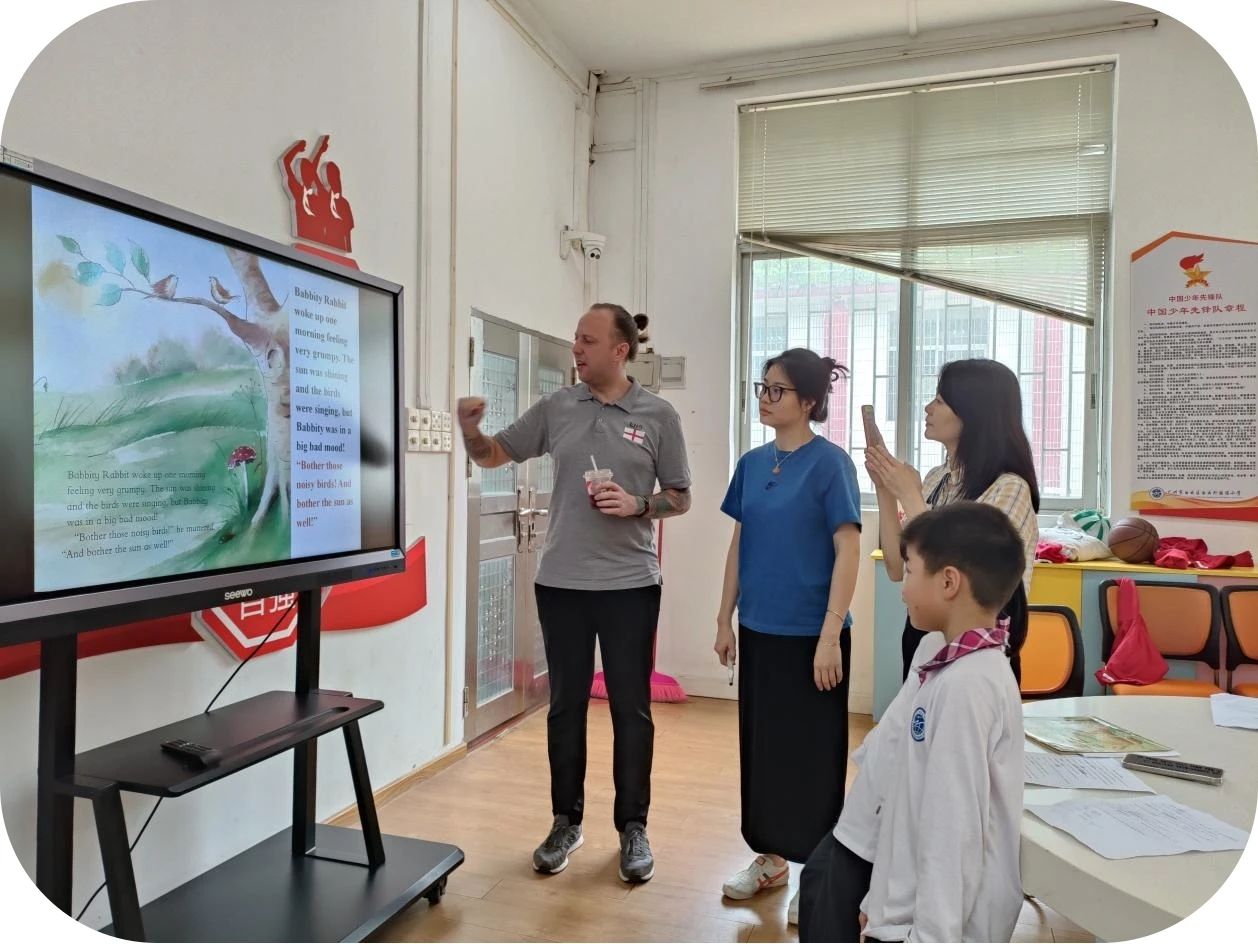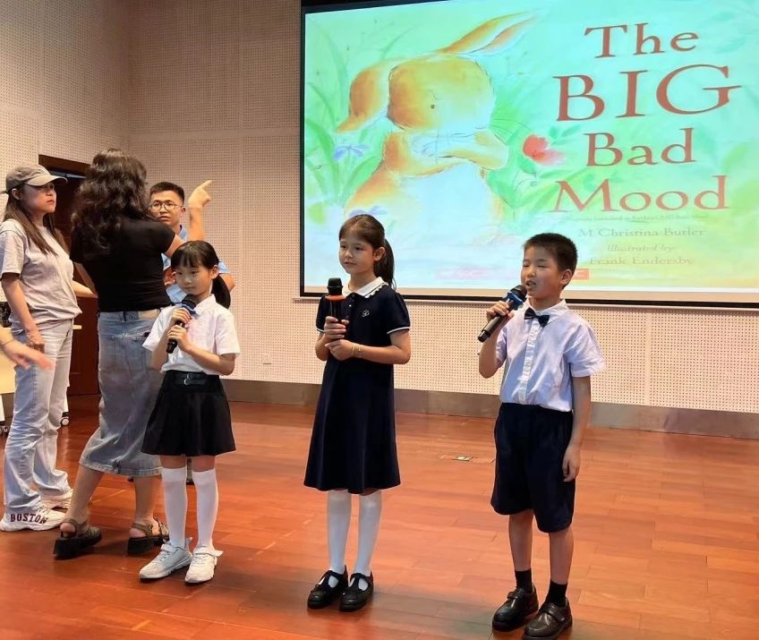 五六年级学生通过绘本分享参与选拔。在4月12日的年级复赛中,刘垛言、李宥辰、陈得之三名同学以流畅的表达和生动的表演,被选为代表五六年级组的选手。