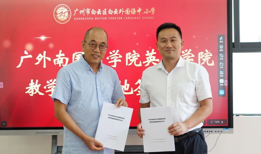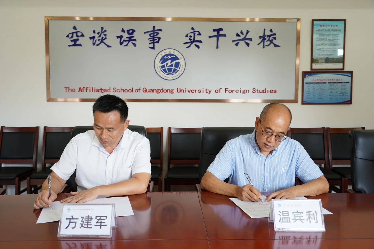 会议的最后,我校方建军校长与广外南国商学院英文学院温宾利院长签署了教学实践基地合作协议。协议的签署,标志着双方将在教育教学工作中展开全方位、深层次的合作。