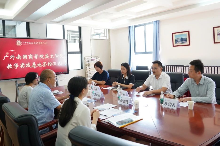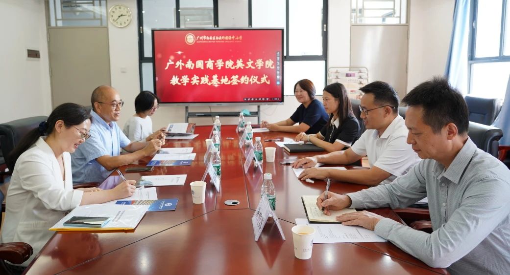 院校携手谋发展,实践探索谱华章。2024年11月1日,我校与广东外语外贸大学南国商学院英文学院在启航楼第一会议室举行实践教学基地签约仪式。广东外语外贸大学南国商学院英文学院院长温宾利、副院长李春梅、党总支书记赖敏以及我校党支部书记、校长方建军,党支部副书记朱传兵,副校长黄哲昙参加了签约会议,会议由我校校办副主任陈丽丽主持。