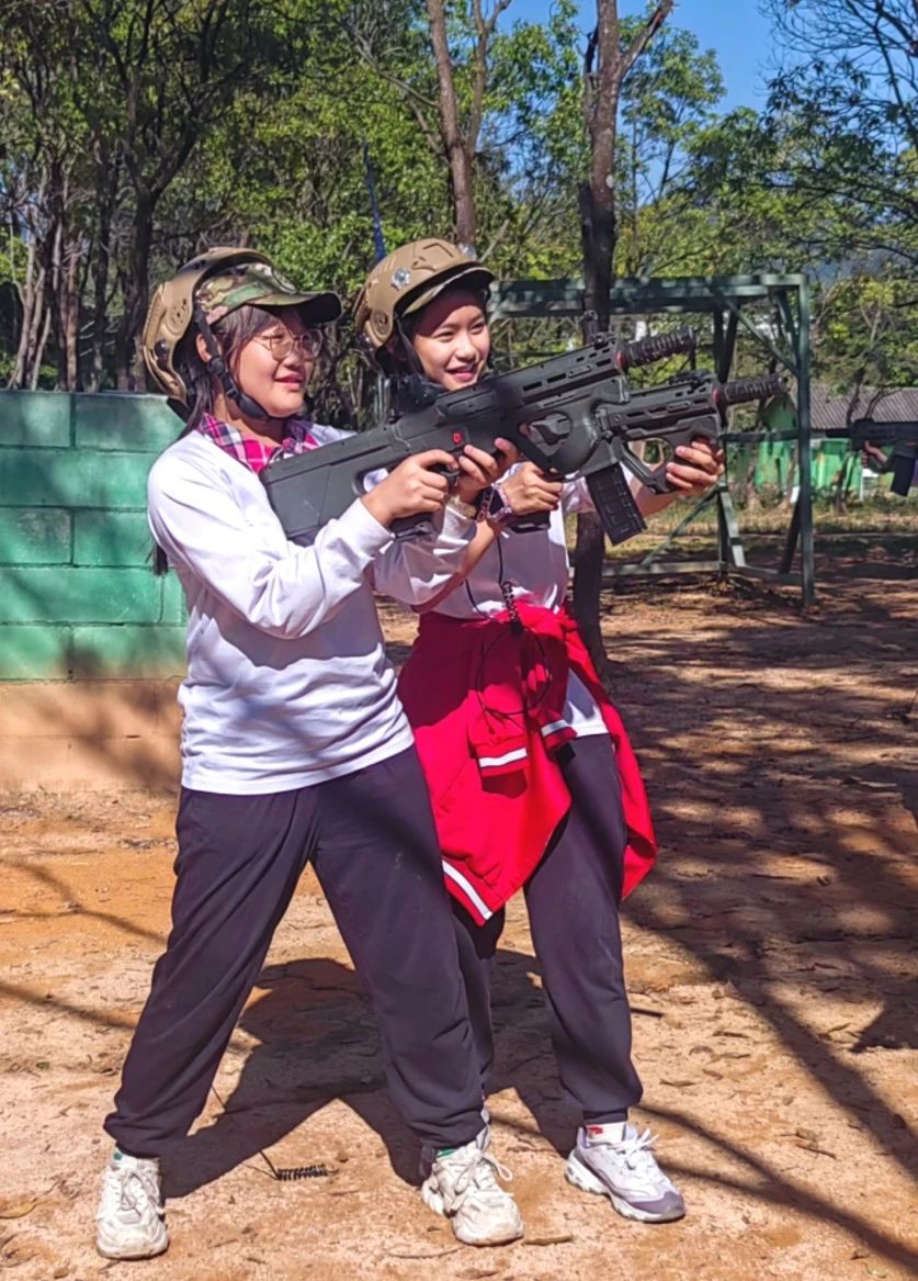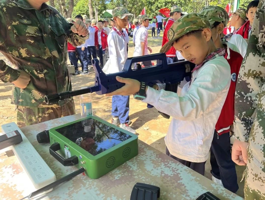 在活动中,同学们亲身体验了军事训练项目,如队列练习、模拟射击、CS竞技体验等,不仅锻炼了身体素质,更培养了团队协作精神和纪律意识。同学们都十分勇敢,每位同学都仿佛化身为小小的探险家,敢于尝试,拼搏进取,笑声不断,紧张刺激的游戏中,孩子们不仅收获了健康和快乐,也增进了同学间的友谊,班级的凝聚力。
